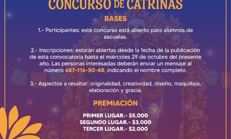 Las inscripciones estarán abiertas desde la fecha de la publicación de esta convocatoria hasta el miércoles 29 de octubre del presente año. Las personas interesadas deberán enviar un mensaje al número 687-116-50-48, indicando el nombre completo. Los aspectos a evaluar son la originalidad, creatividad, diseño, maquillaje, elaboración y gracia.
