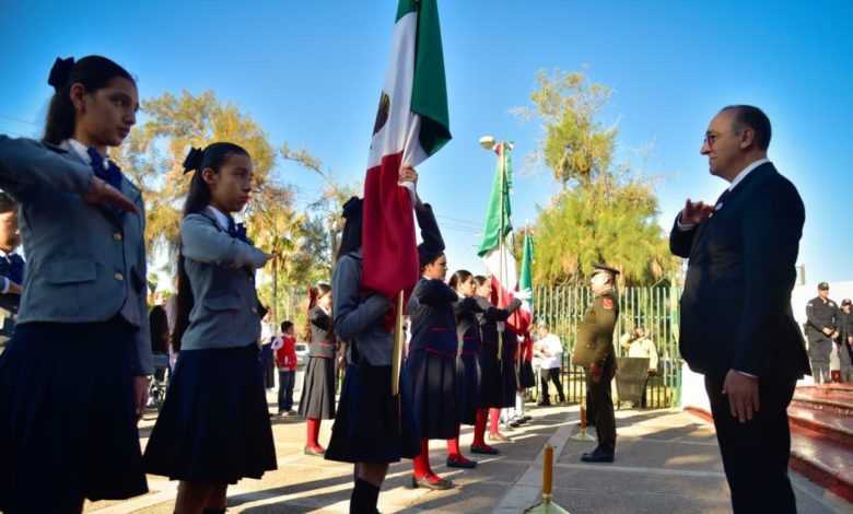Los Mochis, Ahome, Sinaloa. A 24 de Febrero de 2026.- Bajo un cielo que parecía sostener los colores de la patria, Ahome conmemoró el Día de la Bandera con una jornada de profundo significado cívico, donde el respeto se volvió silencio y el orgullo, mirada firme. Las actividades fueron encabezadas por el Presidente Municipal Antonio Menéndez de Llano Bermúdez, en una mañana que recordó que México no sólo se nombra, se honra.