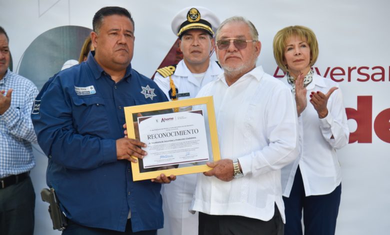 Recibieron las placas de reconocimiento el Capitán Gral.Hugo Ríos Callejas de la 8va. Zona Naval de Topolobampo, el Teniente Óscar Alberto Palacios del 89 Batallón de Infantería y Carlos Francisco Rodríguez Ponce, Secretario de Seguridad y Protección Ciudadana.