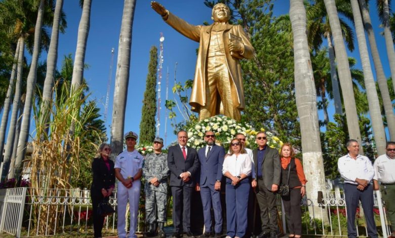 El evento estuvo encabezado por el Alcalde Antonio Menéndez De Llano Bermúdez, junto con los mandos militares, regidores, funcionarios, ciudadanos, e integrantes de las diversas agrupaciones masónicas, quienes elogiaron el devenir histórico y legado de Benito Juárez.