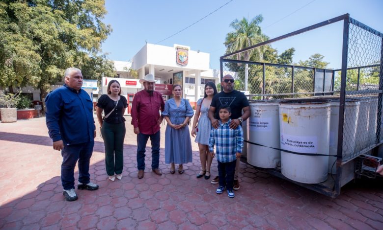 Donan 80 botes de basura para reforzar limpieza en playas de Guasave