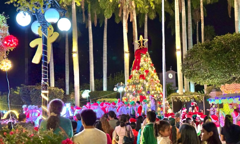 En el marco del Festival Navideño 2025, el pueblo mágico de El Fuerte vivió una noche de celebración con desfile, comparsas y un espectáculo de luces que reunió a cientos de familias en la Plaza de Armas.