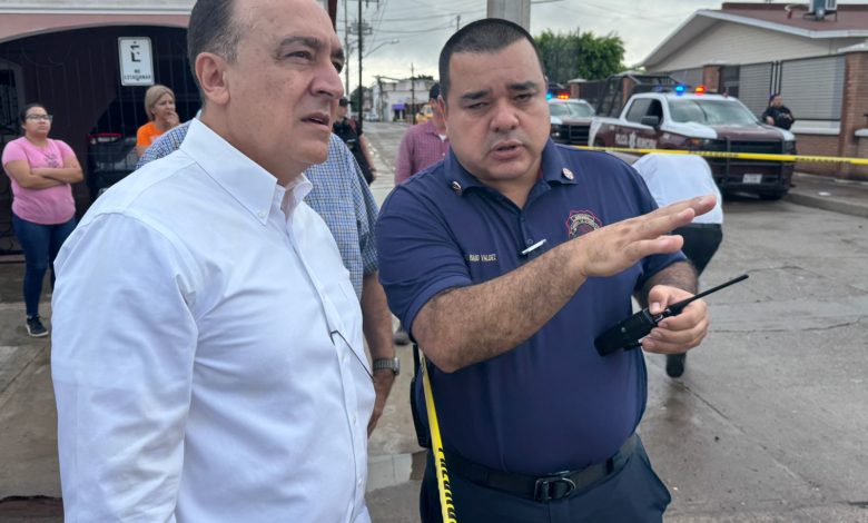 Los Mochis, Sin.- El Presidente de Ahome Antonio Menéndez de Llano Bermúdez acudió al lugar de los hechos donde una casa particular fue consumida por las llamas en el sector centro de la ciudad de Los Mochis.