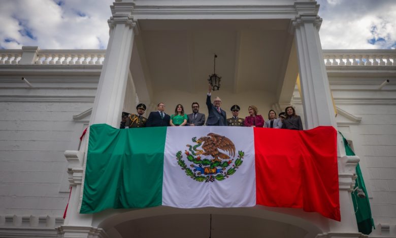 Luego de la conclusión de esta ceremonia, que finalizó con el marcial Toque Tres de Diana en honor a los ascendidos, y el Himno Nacional, el gobernador Rocha, acompañado por los mandos militares y autoridades civiles, subió al balcón de Ayuntamiento para presenciar desde ahí el tradicional desfile cívico militar, que abrió la Banda de Guerra del 94 Batallón de Infantería de la Novena Zona Militar.