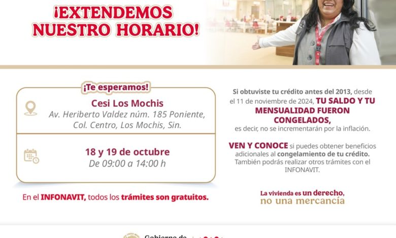 El INFONAVIT realizará jornadas de fin de semana en sus oficinas de Sinaloa, con el objetivo de acercar sus diferentes productos de financiamiento a las y los derechohabientes.