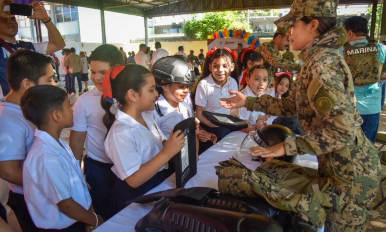 Después del protocolo del evento, los estudiantes participaron en actividades formativas e interactuaron con personal de las Fuerzas Armadas quienes les mostraron una Bandera de México Monumental, equipo táctico y binomios caninos de la Guardia Nacional, 8va. Zona Naval Militar y Ejercito Mexicano.