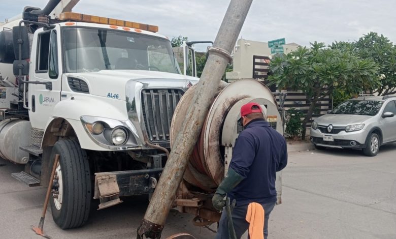 Los Mochis, Sin.- Con el propósito de prevenir inundaciones y evitar brotes de aguas negras durante la próxima temporada de lluvias, personal operativo de la Junta de Agua Potable y Alcantarillado del Municipio de Ahome (JAPAMA) llevó a cabo trabajos de mantenimiento y limpieza en el colector principal y diversas calles del sector Urbi del Rey.