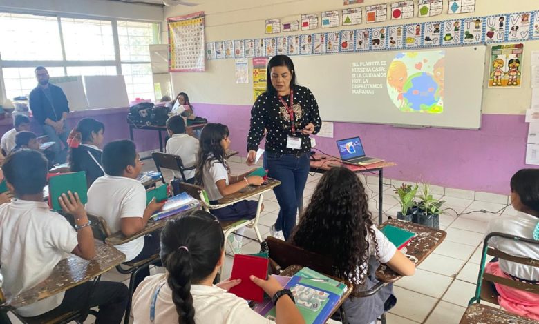 Juan José Ríos.– Por instrucciones de la alcaldesa Evangelina Llanes Carreón, la Dirección General de Ecología y Sustentabilidad Ambiental, dirigida por el Ing. Milton Ramón Flores Herrera, continúa llevando a las escuelas los talleres sobre el cuidado del medio ambiente, con el objetivo de fomentar en las niñas y niños el interés por los problemas ambientales y su impacto en la vida cotidiana.