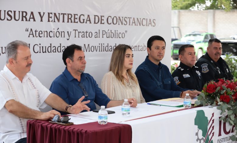 Guasave, Sin.- Autoridades municipales y del Instituto de Capacitación para el Trabajo de Sinaloa entregaron constancias a 166 agentes de la Secretaría de Seguridad Ciudadana y Movilidad Sustentable que concluyeron el curso Atención y Trato al Público.