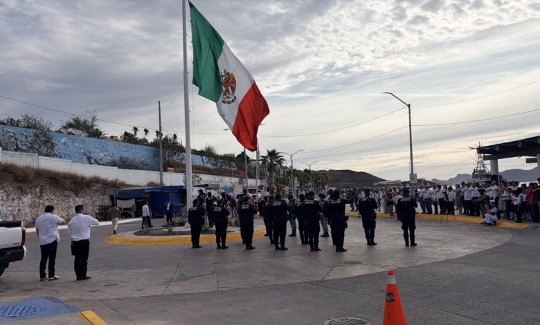 Puerto de Topolobampo, Ahome, Sinaloa. A 14 de Abril de 2026.- Con una ceremonia cívica e izamiento de Bandera a toda asta en la glorieta del malecón del puerto de Topolobampo, a cargo de personal de las fuerzas armadas y de seguridad, inició el programa conmemorativo del 112 aniversario del primer combate aeronaval del mundo sucedido el 14 de abril de 1914 en la época de la Revolución Mexicana en esta bahía de Topolobampo.