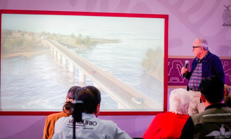 “En pocas palabras, ya está el puente, está el dinero suficiente para pagarlo, no tiene ningún problema, ya los ingenieros están aplicando una tecnología, pues lo más complicado es hacer cómo estos pilares queden debidamente firmes en el agua, pues son 40 metros de profundidad”, retomó el gobernador luego de la explicación técnica que hizo el secretario de Obras.