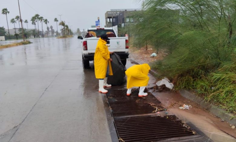 A su vez personal de Servicios Públicos de igual manera desde las primeras obras del día, realiza labores de limpieza en bocas de tormenta y alcantarillas.