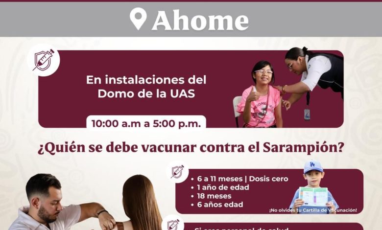 Culiacán, Sinaloa*.- La Secretaría de Salud informa a la población que, con el objetivo de fortalecer la protección contra el sarampión, se instalarán macrocentros de vacunación en distintos municipios del estado durante esta semana.