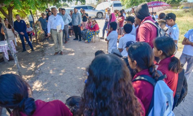El Alcalde, acompañado del titular de la Secretaría de Bienestar, Joaquín Páez Roiz, y algunos otros funcionarios municipales, como los responsables de Atención a Pueblos Indígenas, Leticia Gastélum, Magaly Herrera, directora de Atención y Participación Ciudadana,, así como BernardoHiguera, de Bienestar Social, así como el Síndico Municipal de Higuera de Zaragoza, Alejandro Velarde, entre otros, dialogó con la comunidad y ofreció apoyarles para que a partir del próximo año cuenten con espacios dignos donde estudiar.